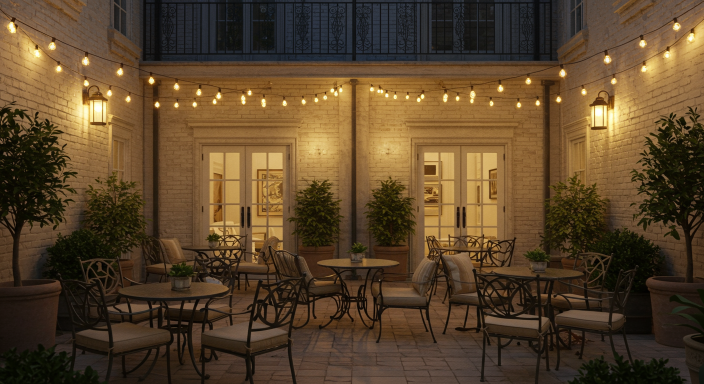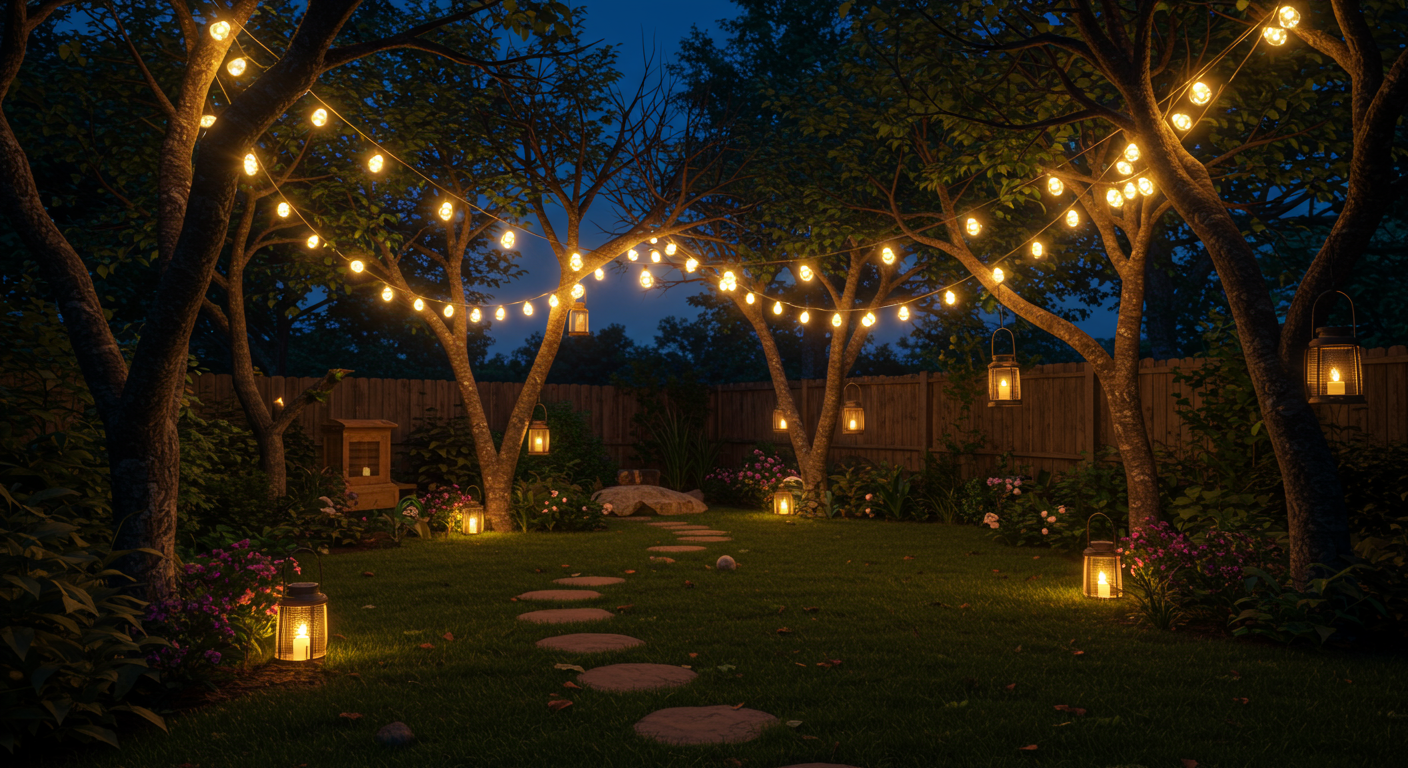 Look no further. String lights. They're an easy way to add warm light, and the soft glow brings a charming, cheery aesthetic to an otherwise dark backyard. Perfect for those late summer nights. Also perfect for decorating on a budget.